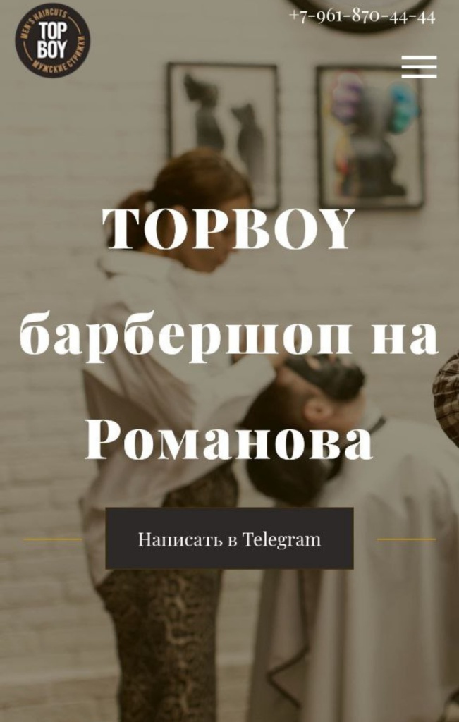У нас есть опыт в этой нише. Один из примеров — сайт для новосибирского барбершопа TOPBOY.