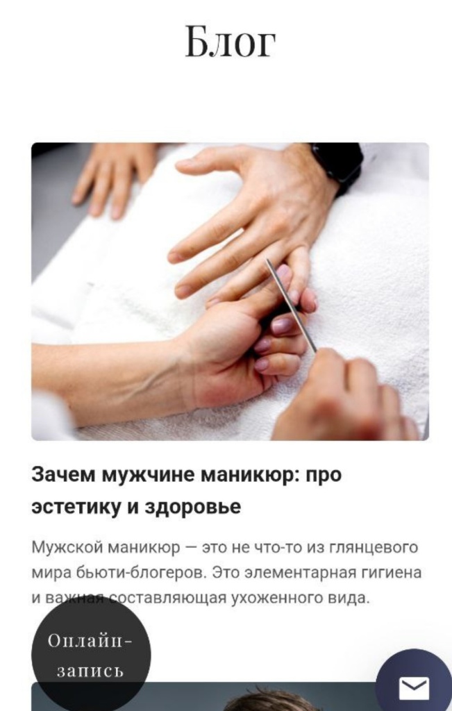 Лаконичный дизайн, акцент на визуал, понятная структура и всё, что нужно клиенту — от услуг до записи.